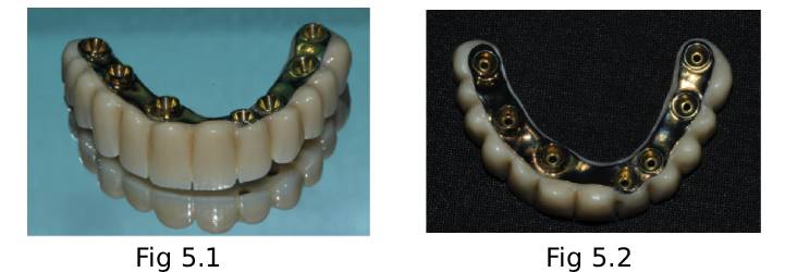 - The upper arch was restored using a digitally milled titanium iBAR framework. It was topped with Illusion Zirconia Dental Bridge. This provided them with an extremely precise fit and long-term stability. (Fig: 3.1, 3.2)